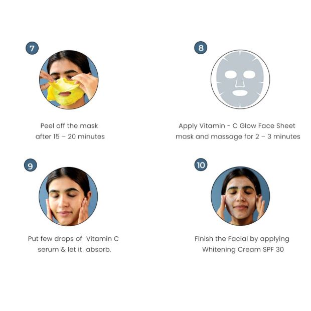 Complete bridal care solution: O3+ Bridal Facial Kit Vitamin C Glowing Skin is a 10-step regimen that ensures wonderful results as it boosts radiance while solving multiple skin concerns. All containments of this kit work together to brighten, moisturize, purify and remove tan from the skin.