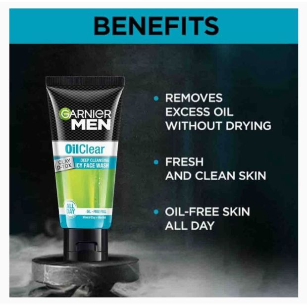 Garnier Men Oil Clear Clay D-Tox Deep Cleansing Icy Face Wash, 50gm